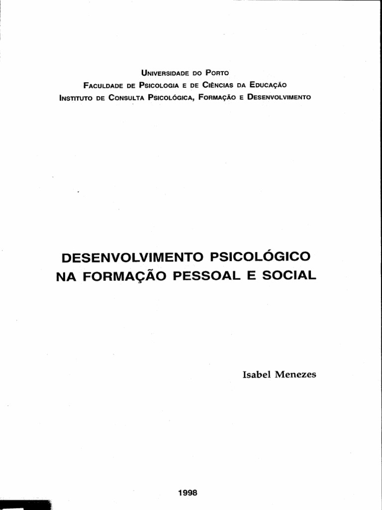UNIVERSIDADE DO PORTO FACULDADE DE PSICOLOGIA E DE CINCIAS DA EDUCAO INSTITUTO DE CONSULTA PSICOLGICA, FORMAO E DESENVOLVIMENTO