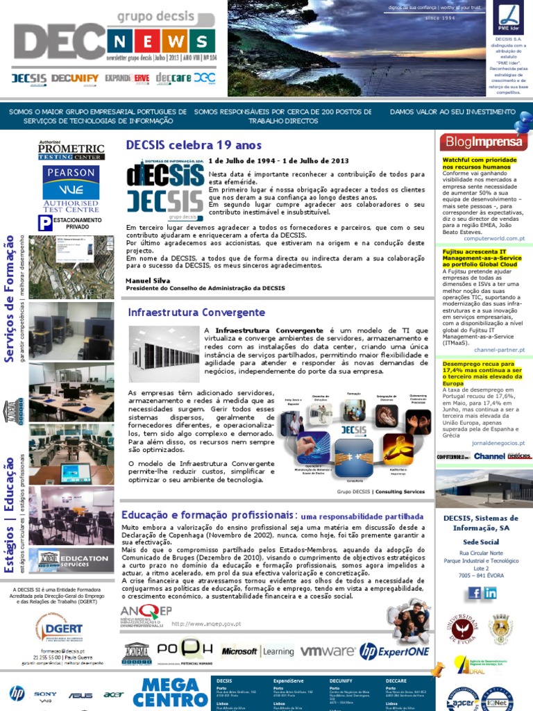 DECSIS S.A. distinguida com a atribuio do estatuto "PME lder". Reconhecida pelas estratgias de crescimento e de reforo da sua base competitiva.