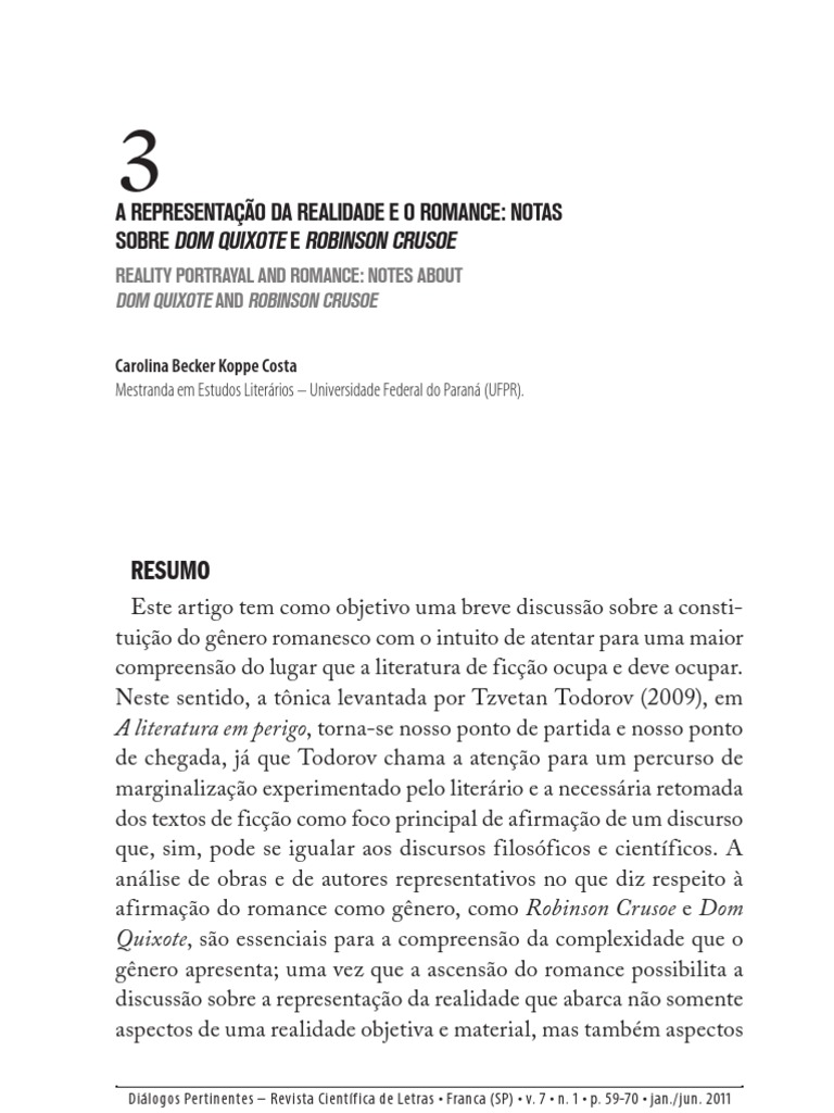Ainda que breves, as consideraes sobre as teses de Costa Lima e Ian Watt nos permitem concordar com ambos ao pensarmos em eleDilogos Pertinentes Revista Cientfica de Letras Franca (SP) v. 7 n. 1 p. 59-70 jan./jun. 2011
