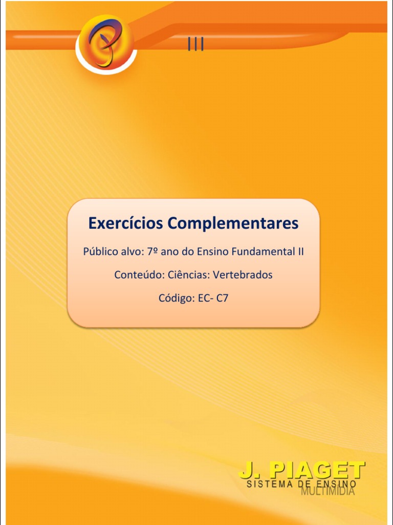Pblico alvo: 7 ano do Ensino Fundamental II Contedo: Cincias: Vertebrados Cdigo: EC- C7