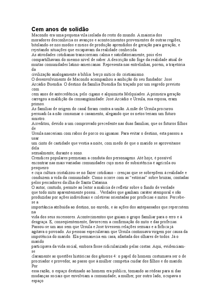 nova comunidade. Ali, fundaram Macondo, onde os Buendia criariam os três filhos: