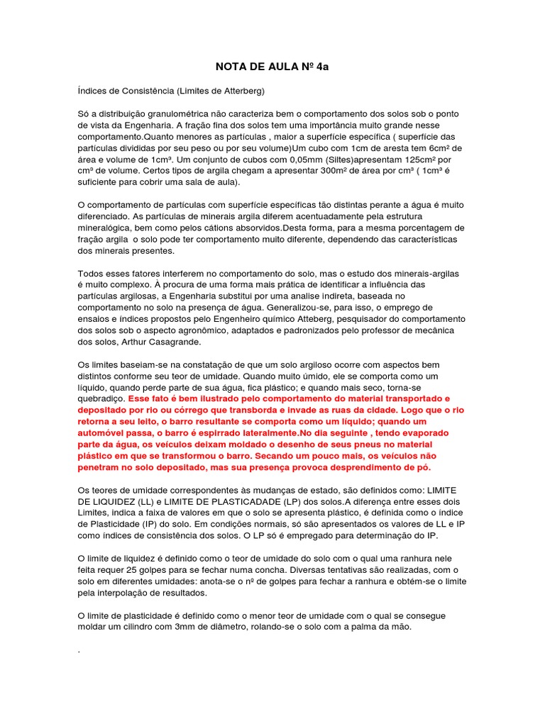Limites, indica a faixa de valores em que o solo se apresenta plstico, definida como o ndice