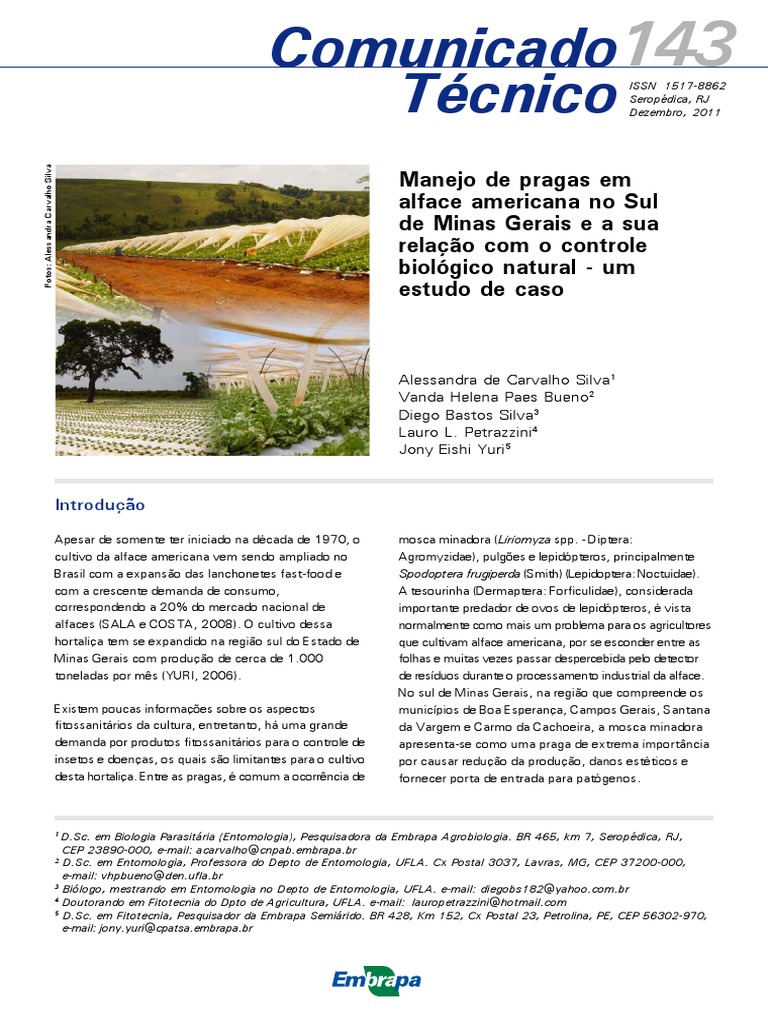6 Manejo de pragas em alface americana no Sul de Minas Gerais e a sua relao com o controle biolgico natural - um estudo de caso