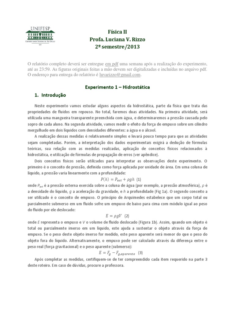 O relatrio completo dever ser entregue em pdf uma semana aps a realizao do experimento, at as 23:59. As figuras originais feitas a mo devem ser digitalizadas e includas no arquivo pdf. O endereo para entrega do relatrio luvarizzo@gmail.com.
