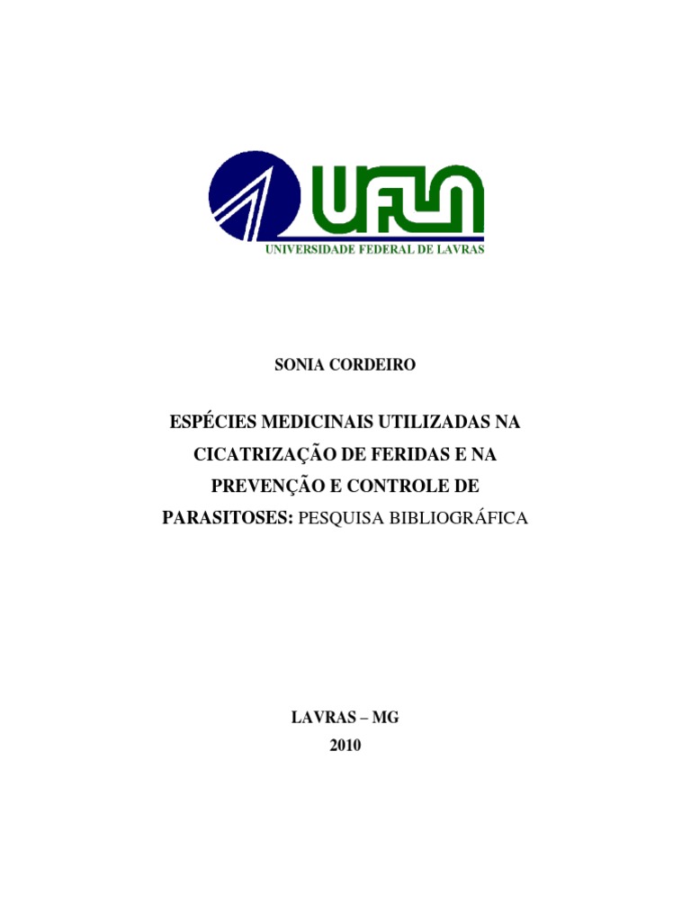 ESPÉCIES MEDICINAIS UTILIZADAS NA CICATRIZAÇÃO DE FERIDAS E NA PREVENÇÃO E CONTROLE DE PARASITOSES: PESQUISA BIBLIOGRÁFICA