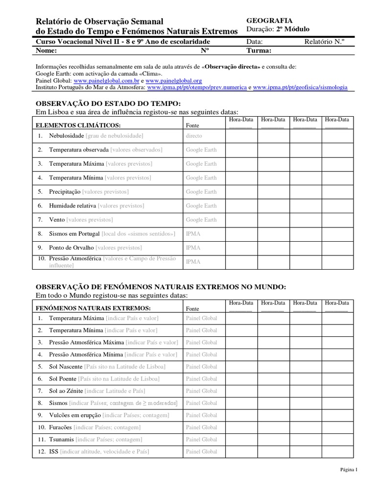 Google Earth: com activação da camada «Clima». Painel Global: www.painelglobal.com.br e www.painelglobal.org Instituto Português do Mar e da Atmosfera: www.ipma.pt/pt/otempo/prev.numerica e www.ipma.pt/pt/geofisica/sismologia
