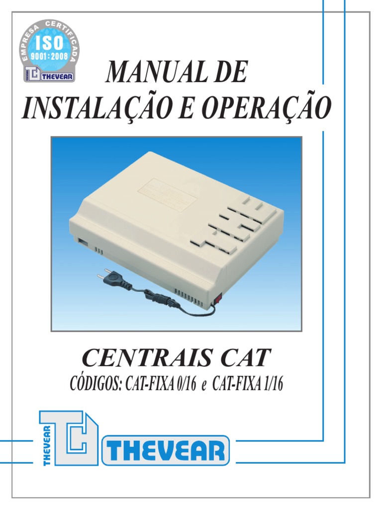 CARO CLIENTE, Parabns, voc acaba de adquirir a CENTRAL CAT-FIXA, com a garantia de qualidade e padro tcnico . Para obter o melhor proveito do seu equipamento recomendamos que este manual seja atenciosamente lido e que seus procedimentos nele contido sejam seguidos, e ento que as instrues de operao sejam entregues e explicadas aos operadores. Este equipamento tem um ano de garantia, a contar da data de sua compra, conforme nota fiscal. Desfrute de todos os recursos que este equipamento lhe oferece. NO LIGUE O EQUIPAMENTO ANTES DA LEITURA CUIDADOSA E COMPLETA DESTE MANUAL. A INSTALAO E MANUTENO DESTE EQUIPAMENTO REQUEREM CONHECIMENTO TCNICO. CONFIE ESTE SERVIO A UM PROFISSIONAL CAPACITADO.