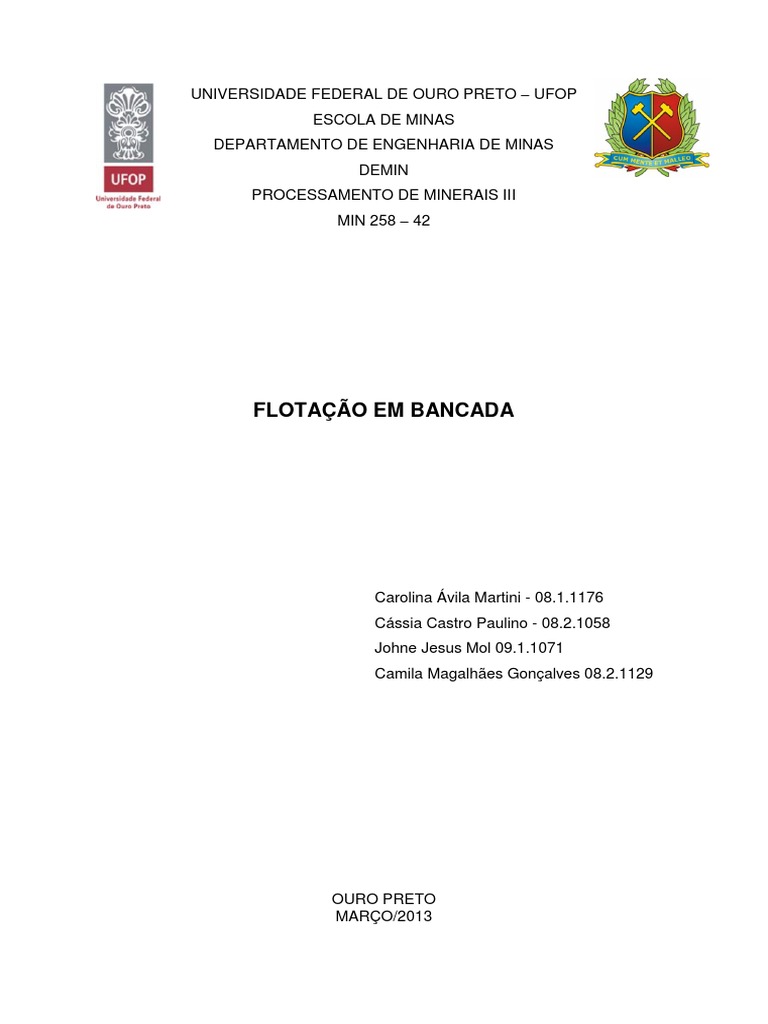 REFERNCIAS [1] CHAVES, A. P.; Teoria e Prtica do Tratamento de Minrios, Vol. 4, Flotao, o