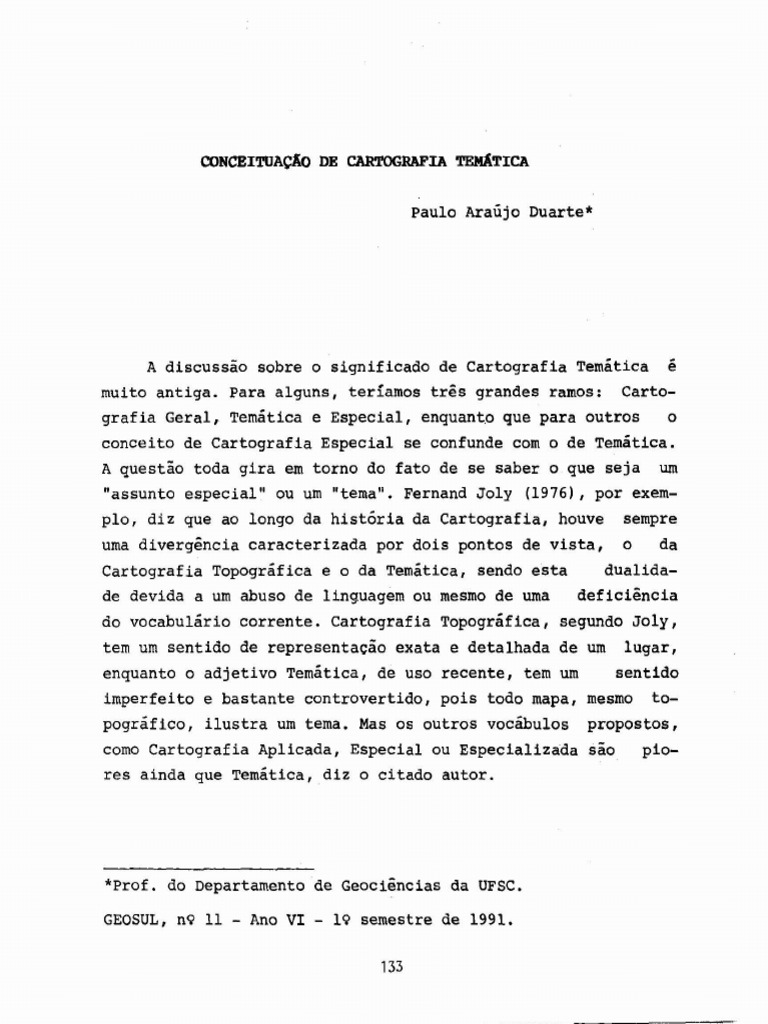 do vocabulario corrente. Cartografia Topografica, segundo Joly,
