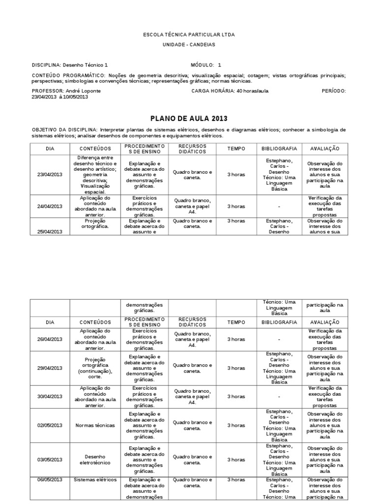 CONTEDO PROGRAMTICO: Noes de geometria descritiva; visualizao espacial; cotagem; vistas ortogrficas principais;