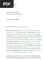 Zu Aufgabe 8: Die Aufgabe wird im Plenum kontrolliert und eventuelle Unklarheiten werden beseitigt. Lernziel: Kontrolle des Textverstndnisses Zu Aufgabe 9: LK kopiert vorab die KV 2. Ablauf: Jede der sieben Gruppen zieht einen Szenen-Zettel. In den Gruppen werden die Rollen verteilt: Da es zumeist nur zwei Hauptrollen gibt, muss sich die Gruppe fr die Anderen Statisten rollen ausdenken. Beim Schreiben von Rollenspielen kontrolliert die LK die Texte. Im Anschluss werden die Szenen entsprechend ihrer Reihenfolge vorgespielt. Lernziel: freies und kreatives Schreiben; freies Sprechen vor der Klasse Zu Aufgabe 10: Whrend der Diskussion bernimmt die LK die Rolle des Betrachters und hilft, wenn ntig. Hinweis fr die Arbeit in den Kleingruppen: Die Lerner sollen Pro-/ContraArgumente sammeln und gemeinsam zu einem Konsens finden. Lernziel: Frderung der kommunikativen Kompetenz; einander erzhlen und zuhren Zu Aufgabe 11: Recherche eignet sich als Hausaufgabe, die spter im Plenum besprochen wird. Lernziel: Vergleich mit anderen Mrchen; Handlung eines anderen Mrchens verstehen