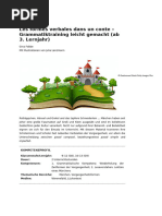 KV 6: EIN MRCHEN SCHREIBEN So sollte euer Mrchen aussehen! 1. Einleitung Sie sollte kurz und knapp sein. Hier werden die W-Fragen (wer, wo, was, wie, warum, wann) knapp beantwortet. Hauptteil Es sollte eine steigende Spannung und einen Hhepunkt geben. Schluss Er sollte nicht zu lang sein. 2. Sucht aus jeder Spalte ein Kstchen aus und benutzt es beim Schreiben. Held ein schner Prinz ein kluges Mdchen ein braver Ritter Bsewicht ein Monster ein Drache eine Hexe Helfer eine Fee ein Zauberer ein Zwerg Aufgaben eine Prinzessin befreien ein Knigreich retten einen Schatz finden Zauberspruch hexhex abrakadabra simsalabim