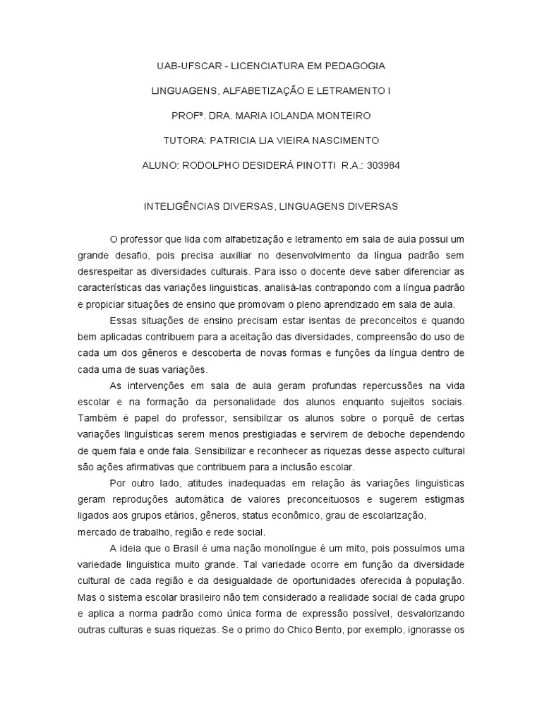 saberes dele pelo fato do seu linguajar no atenderem aos padres estabelecidos, ele