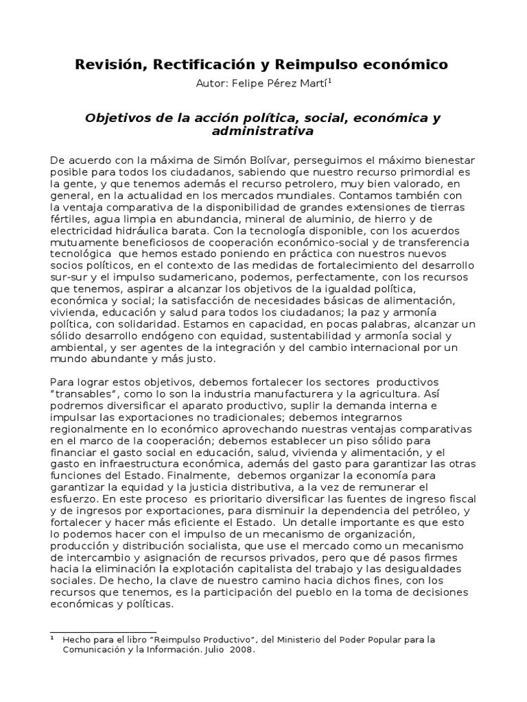 ,n el pre ente en a$o e )ace un "alance re umido de lo a pecto econmico , ociale $ poltico*in titucionale m relevante de la !e tin de !o"ierno de lo 7ltimo a8o + e )ace un anli i de u cau a , $ e proponen medida para recti(icar $ reimpul ar el proce o revolucionario o"re "a e lida , para con e!uir lo o"'etivo planteado , teniendo en mente el )orizonte de de arrollo poltico ocial #ue )emo planteado