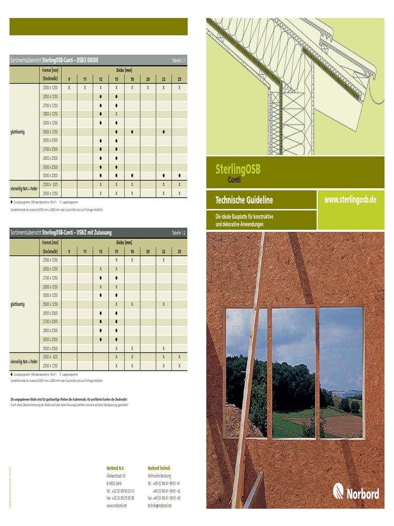Sortimentsbersicht SterlingOSB-Conti OSB/Z mit Zulassung Tabelle 1.2
