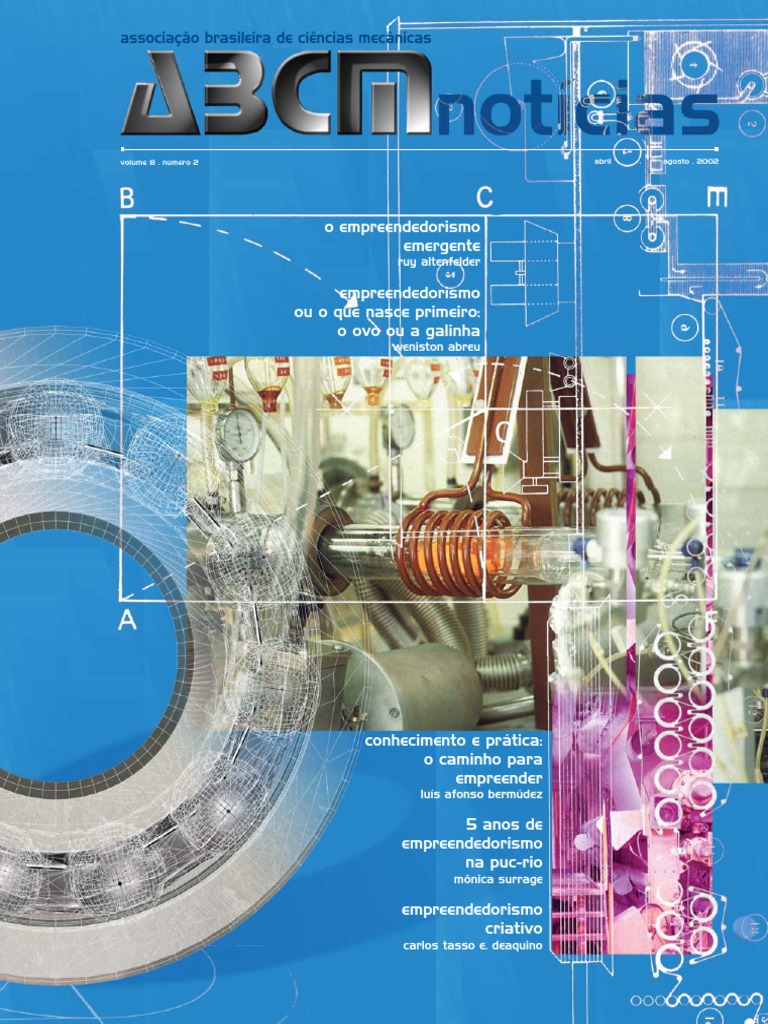 com grande prazer que oferecemos aos membros da ABCM o boletim informativo em novo formato, com maior qualidade grfica e com contedo temtico. Com o apoio da nova diretoria de nossa associao, o sonho de termos uma revista de divulgao tecnolgica comea a tomar corpo. Este ano sero apenas dois nmeros do ABCM Notcias no novo formato. A partir de 2003 o boletim passar a ter status de revista, com o nome ABCM Engenharia e com um Comit Editorial. Sero quatro nmeros por ano, cada um dedicado a um tema de interesse da comunidade de Engenharia e Cincias Mecnicas e reas afins. Este primeiro boletim no novo formato, embrio da nova revista, tem por tema o Empreendedorismo. Num momento em que o pas desperta para a importncia da pesquisa e inovao para a competitividade industrial e insero do pas na economia global, este tema est mais do que nunca em pauta. Trazemos, ainda, importantes informaes do CAEM do CNPq e outras notcias de interesse de nossa comunidade. Desejamos a todos uma boa leitura e reiteramos nosso pedido de crticas, sugestes e contribuies. Contribua com o ABCM Notcias enviando-nos suas crticas, sugestes e contribuies por correio eletrnico para: arruda@fem.unicamp.br ou para o endereo: Cx Postal: 6122, CEP 13083-080 Campinas, So Paulo.