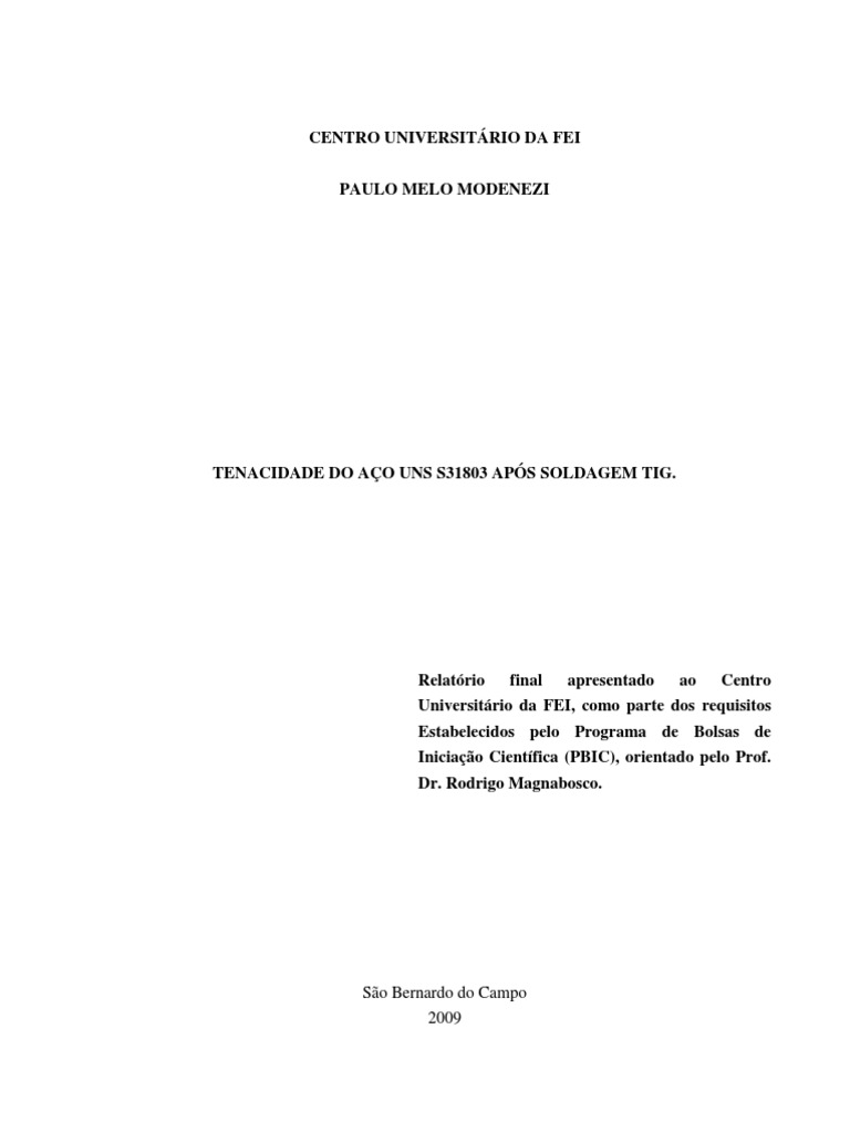 Relatório final apresentado ao Centro Universitário da FEI, como parte dos requisitos Estabelecidos pelo Programa de Bolsas de Iniciação Científica (PBIC), orientado pelo Prof. Dr. Rodrigo Magnabosco.