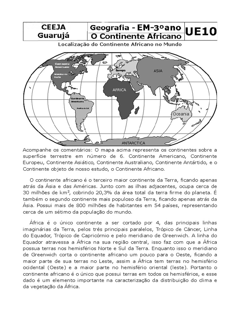continente africano o nico que possui terras em todos os hemisfrios, e esse
