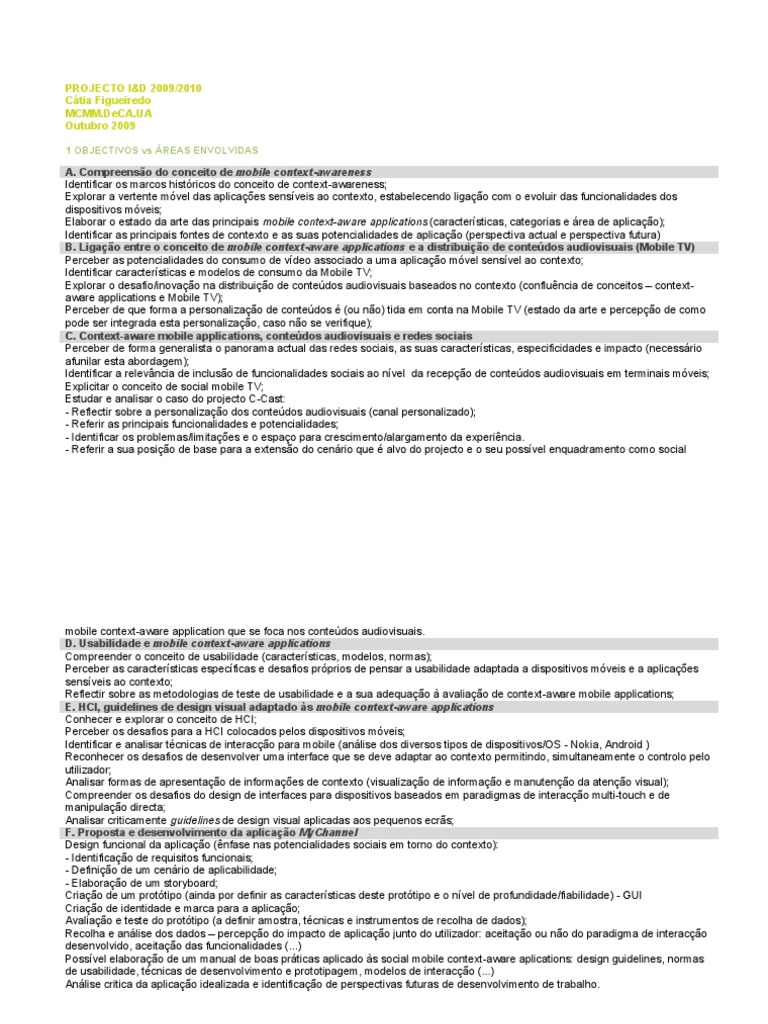 E. HCI, guidelines de design visual adaptado às mobile context-aware applications