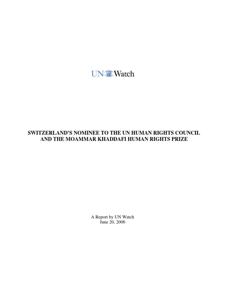 SWITZERLAND’S NOMINEE TO THE UN HUMAN RIGHTS COUNCIL