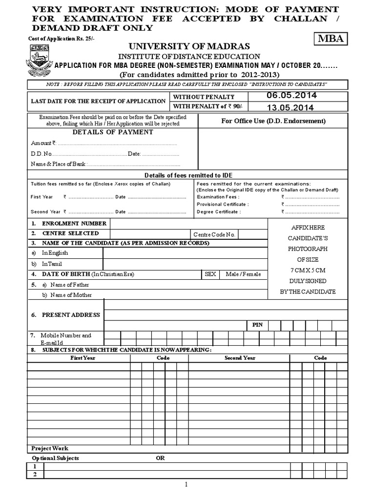 APPLICATION FOR MBA DEGREE (NON-SEMESTER) EXAMINATION MAY / OCTOBER 20.......