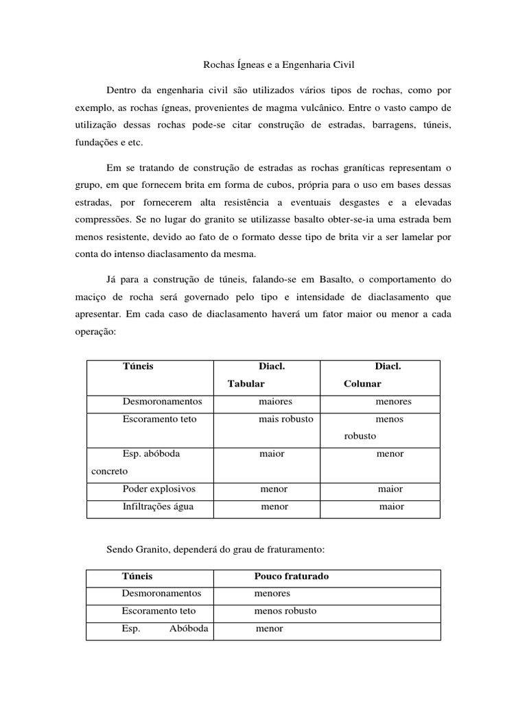 Dentro da engenharia civil so utilizados vrios tipos de rochas, como por