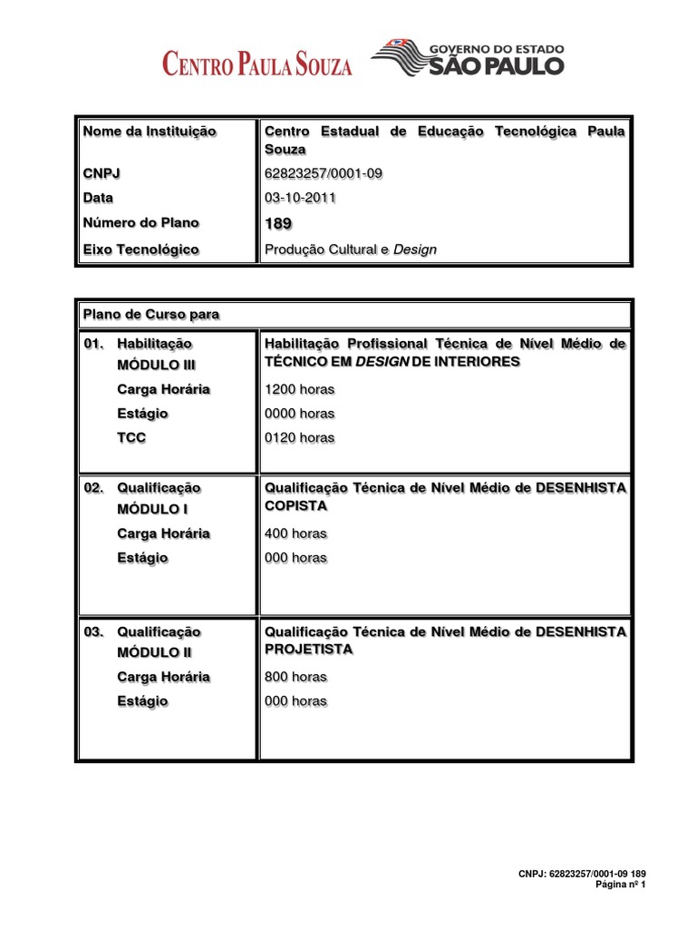 Centro Estadual de Educação Tecnológica Paula Souza Governo do Estado de São Paulo Praça Cel. Fernando Prestes, 74 – Bom Retiro – CEP: 01124-060 – São Paulo – SP