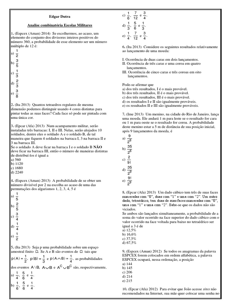 16. (Ita 2012) Dez cartes esto numerados de 1 a 10. Depois