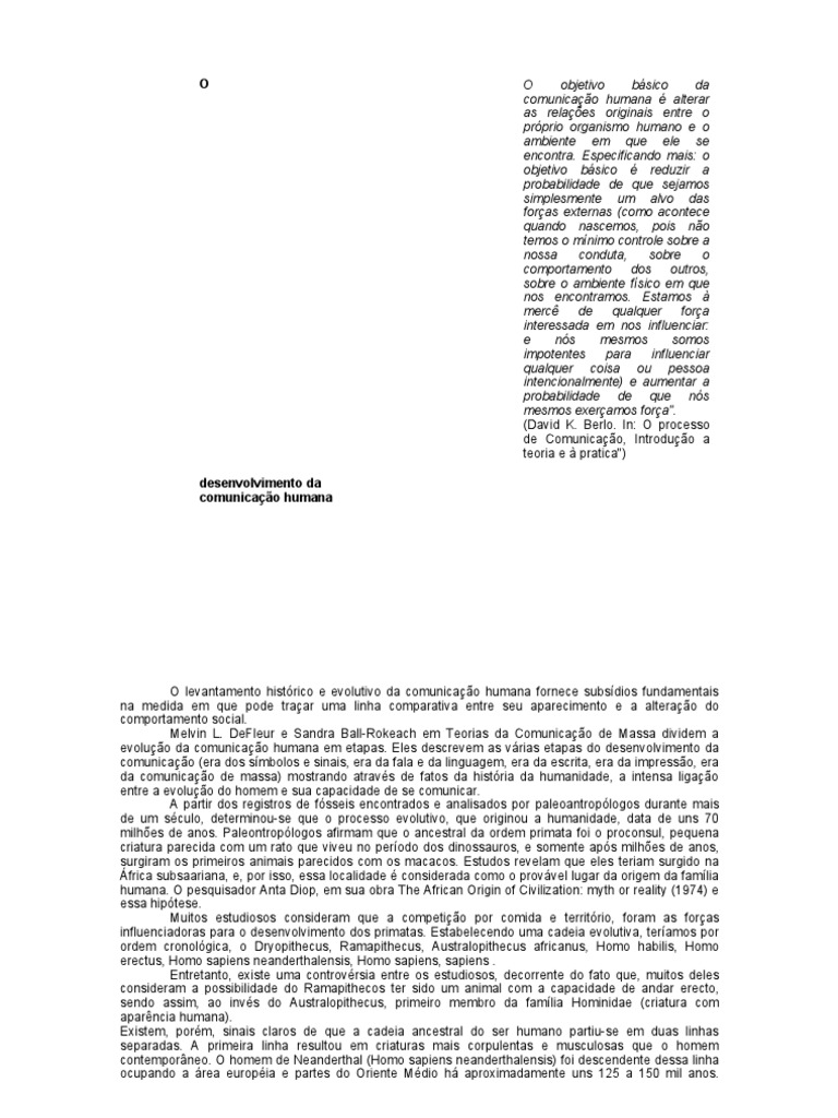 da comunicação humana, identificar os momentos específicos em que o homem efetivamente realizou