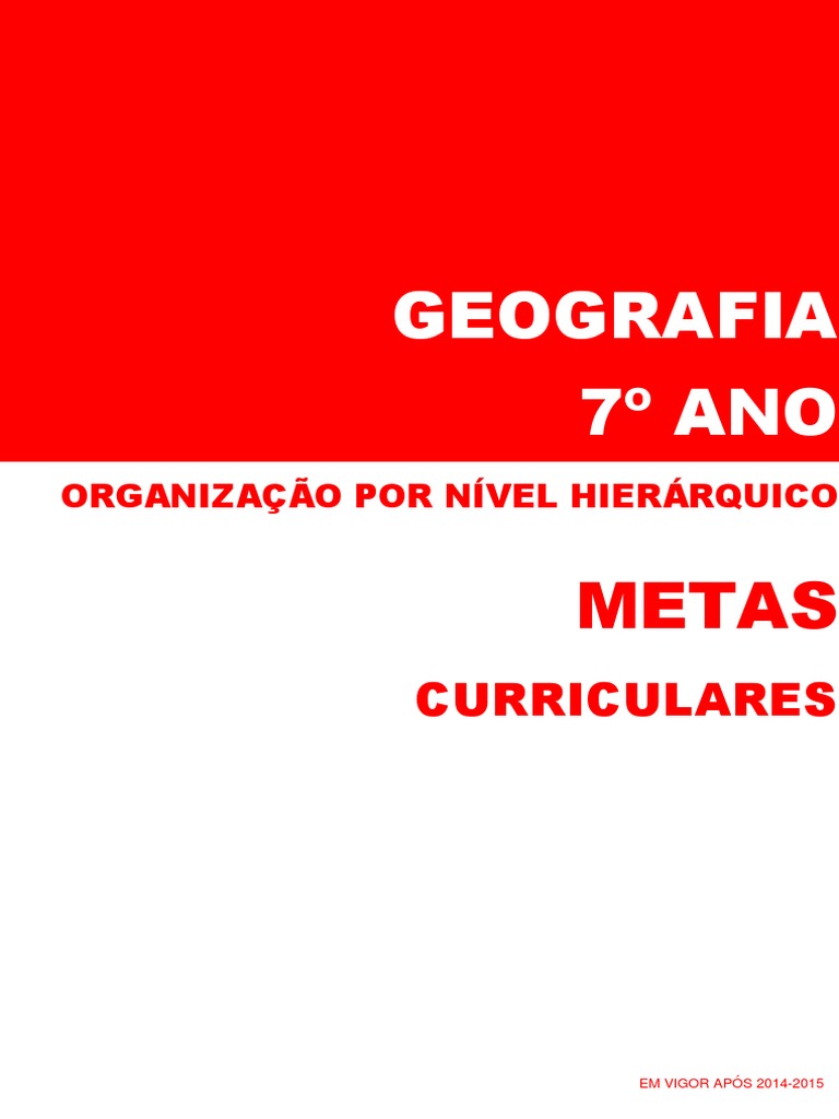 As Metas Curriculares de Geografia para o 7 Ano entram em vigor no ano 2014-2015.