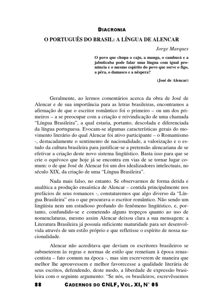 88 CADERNOS DO CNLF, VOL. XI, N° 05