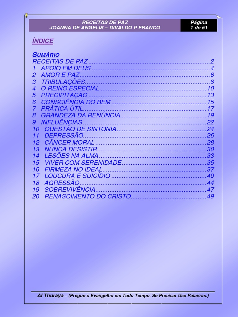 RECEITAS DE PAZ ..................................................................... 2