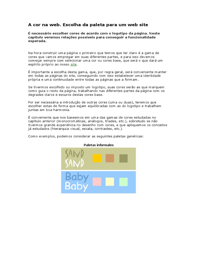 Escolha da paleta para um web site