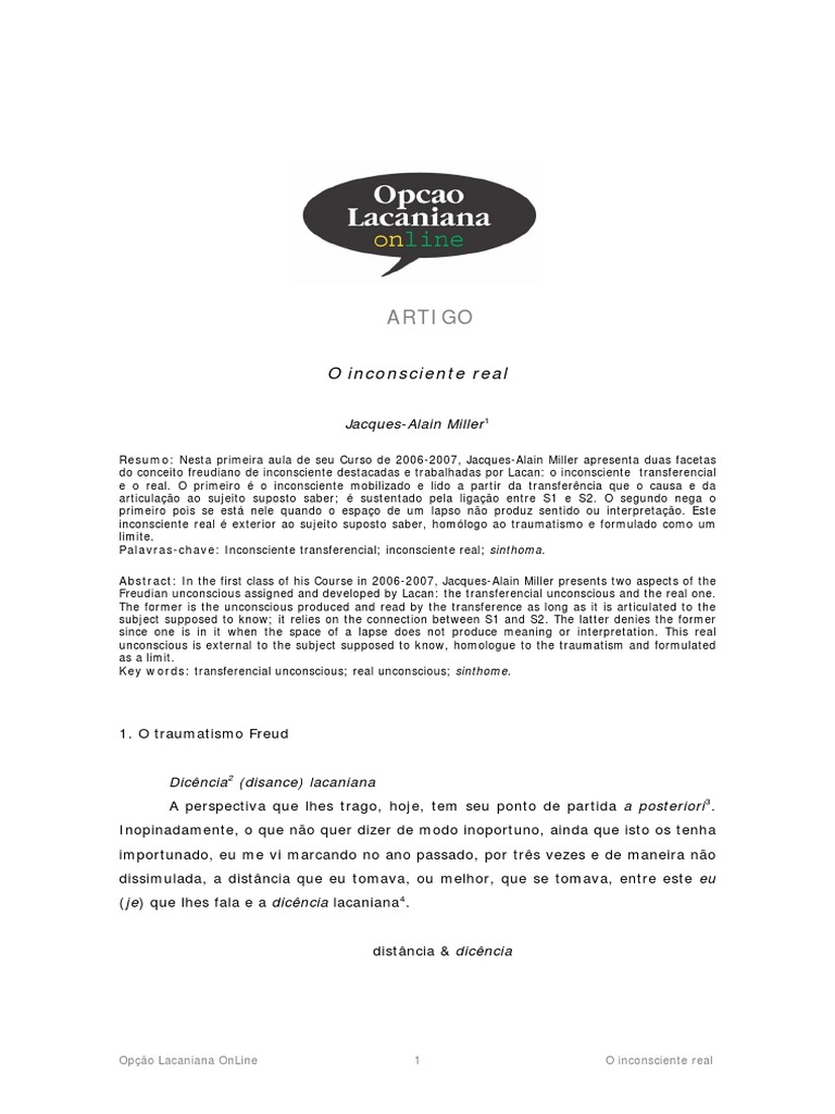 Cf. Miller, J-A., Orientao lacaniana III, I (1998-99).