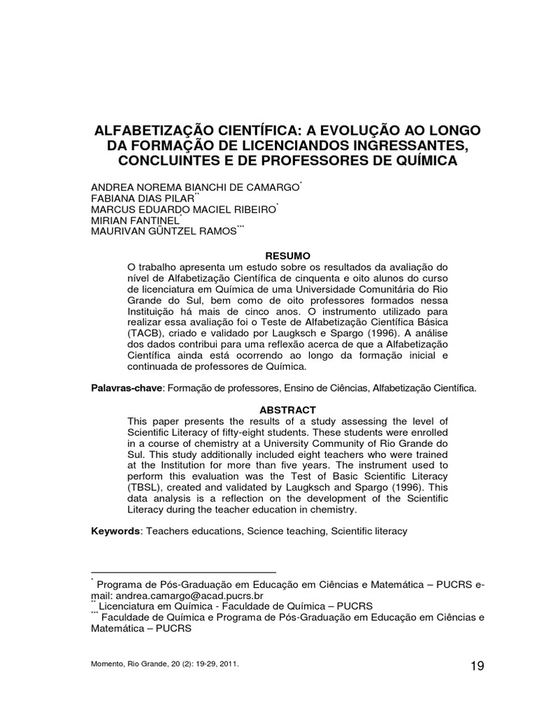 Iniciao Cientfica PUCRS: Estudo sobre a Alfabetizao Cientfica de