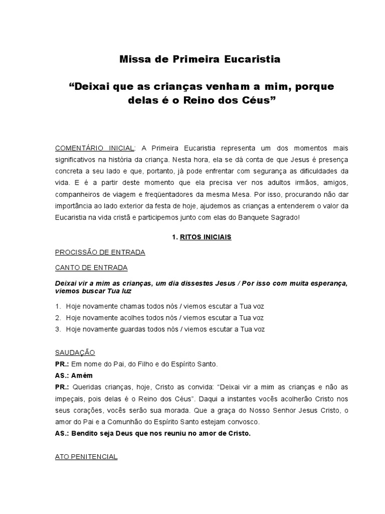PR.: =ueridas crian!as da Primeira Eucaristia e toda a comunidade a&ui reunida# pe!amos