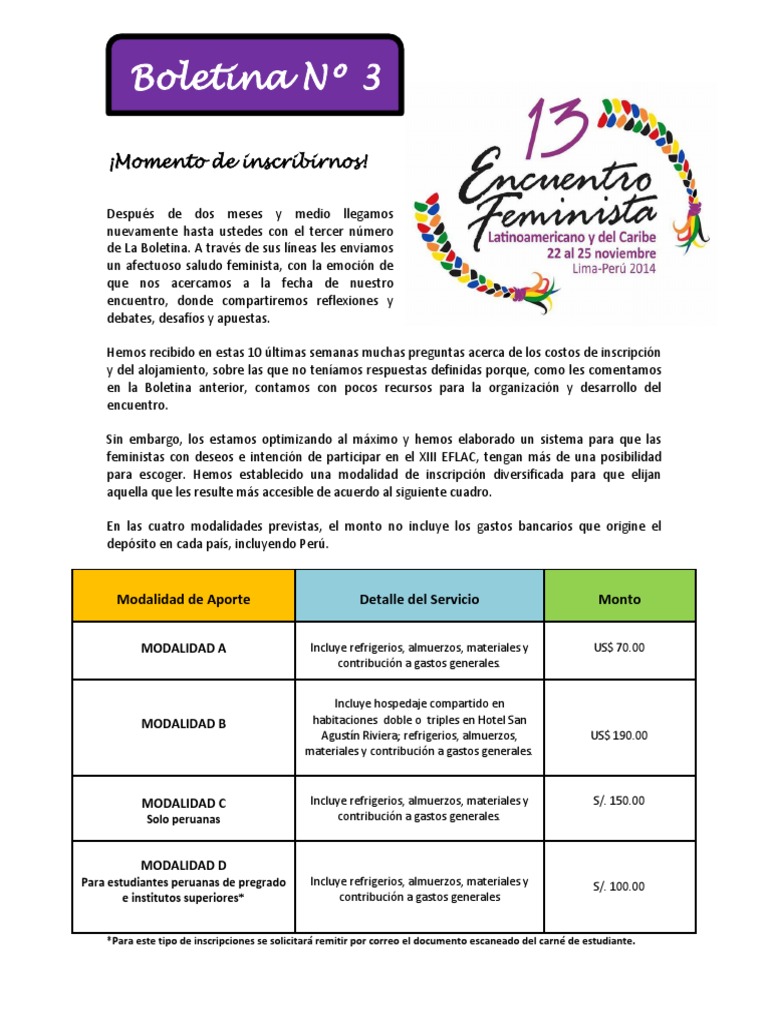feministas con deseos e intencin de participar en el XIII EFLAC, tengan ms de una posibilidad