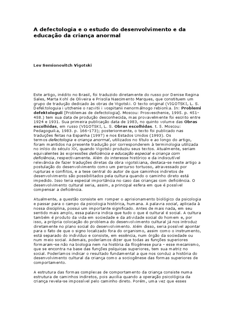 relevncia de fazer tradues diretas da obra vigotskiana, destaca-se neste artigo a