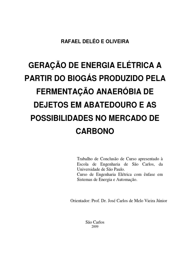 [31] Costa, D. F. Gerao de energia eltrica a partir do biogs de tratamento de esgoto. So Paulo,