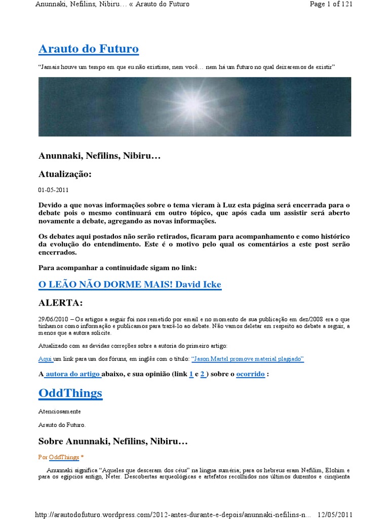 Anunnaki, Nefilins, Nibiru… Atualização: