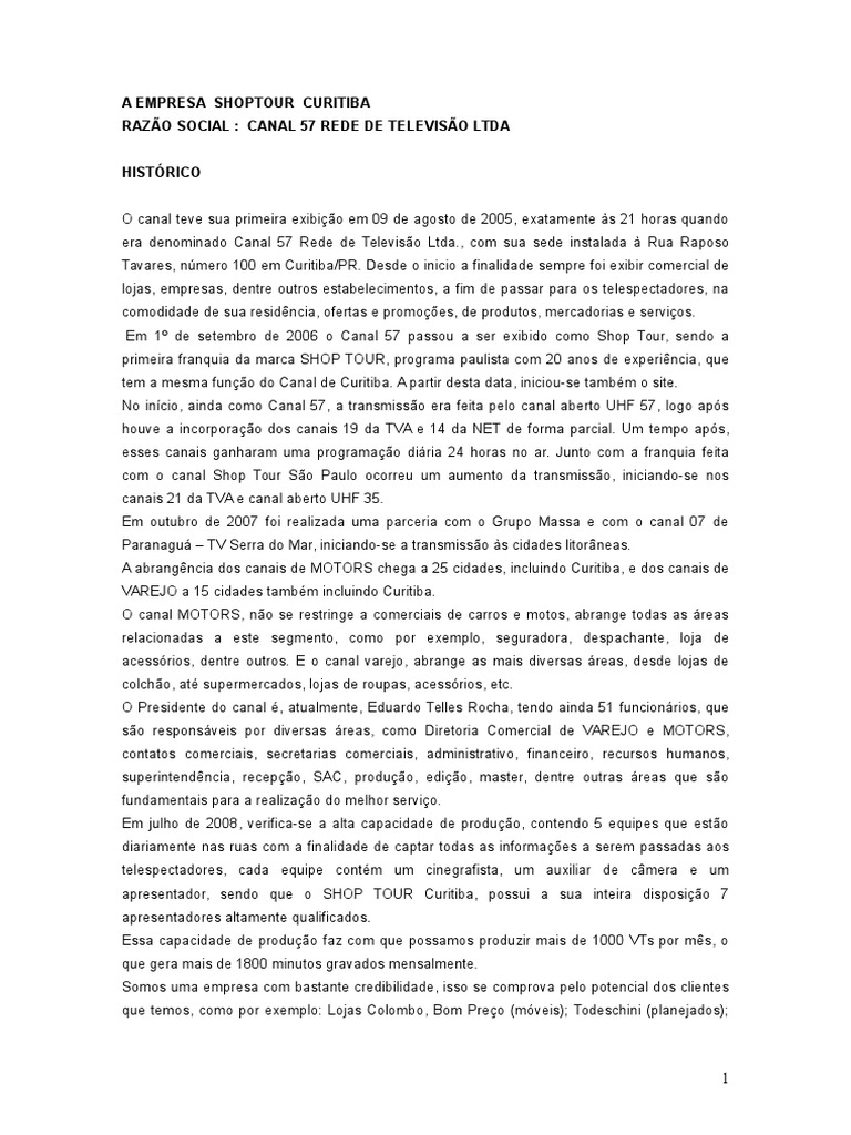 O Canal SHOP TOUR, possui como sua principal misso, oferecer a melhor opo em mdia de