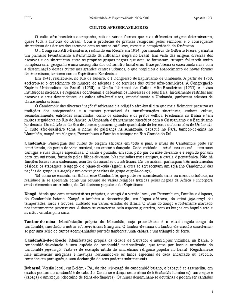 O culto afro-brasileiro acompanha, sob as vrias formas que suas diferentes origens determinaram,