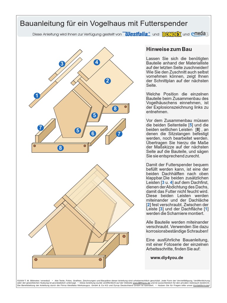 Bauanleitung fr ein Vogelhaus mit Futterspender