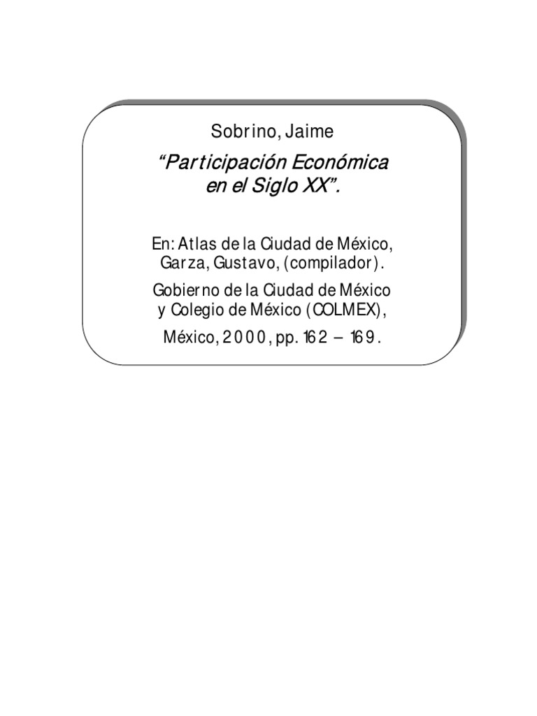 Garza, GUSLaVO(1976), "Estr1lcrnra y dinmica macroeconmica de la Ciudad de Mxico", tesis para optar
