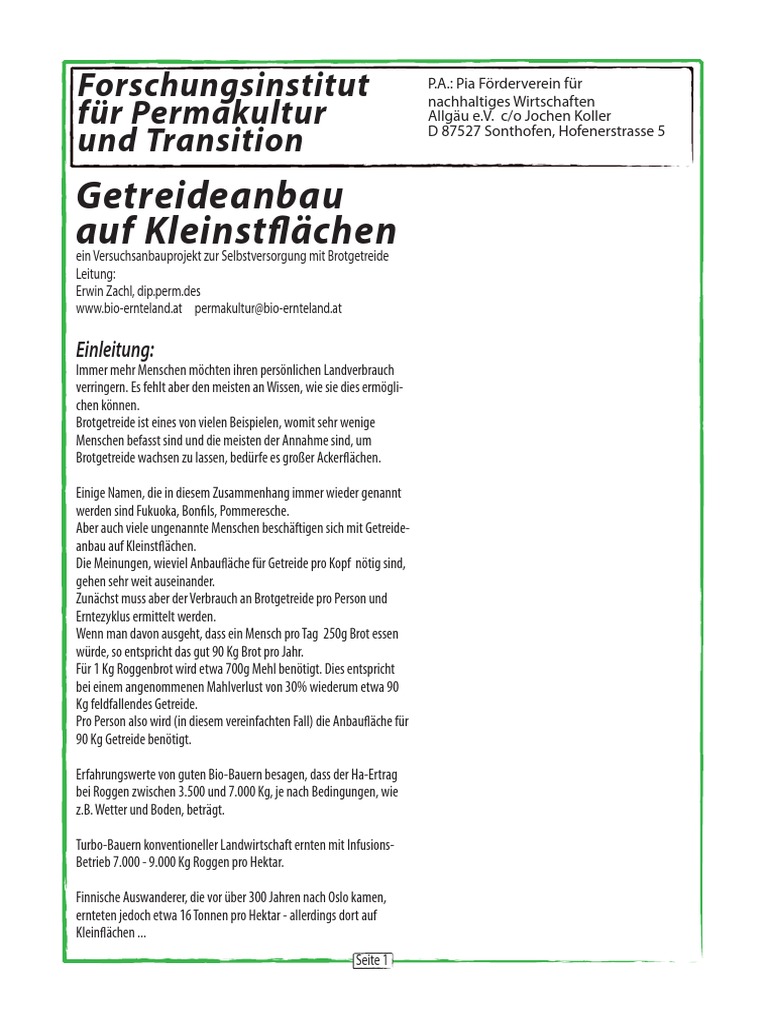 ein Versuchsanbauprojekt zur Selbstversorgung mit Brotgetreide