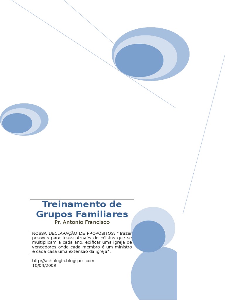 INTRODUO - - - - - - - - - - - - - - - - - - - - - - - - - - - - - - - - - - - - - - - - - - - - 01. DIAGNSTICO GERAL DA IGREJA - - - - - - - - - - - - - - - - - - - - - - - 02. UMA IGREJA EQUILIBRADA - - - - - - - - - - - - - - - - - - - - - - - - - - - - 03. O QUE SO GRUPOS FAMILIARES? - - - - - - - - - - - - - - - - - - - - - - 04. QUAL A BASE BBLICA PARA GRUPOS FAMILIARES? - - - - - - - 05. QUE TIPOS DE GRUPOS EXISTEM? - - - - - - - - - - - - - - - - - - - - - - - 06. UMA IGREJA QUE DESENVOLVE RELACIONAMENTOS - - - - - - 07. POR QUE GRUPOS FAMILIARES FALHAM? - - - - - - - - - - - - - - - - 08. O CRESCIMENTO ORGNICO DOS GRUPOS FAMILIARES - - - - 09. O CRESCIMENTO QUALITATIVO DOS GRUPOS FAMILIARES - 10. O CRESCIMENTO QUANTITATIVO DOS GRUPOS FAMILIARES 11. COMO COMEAR GRUPOS FAMILIARES - - - - - - - - - - - - - - - - - - 12. COMO FUNCIONAM OS GRUPOS FAMILIARES? - - - - - - - - - - - - 13. QUAL O PERFIL DOS LDERES DE GRUPOS FAMILIARES? - - 14. COMO TREINAR LDERES PARA OS GRUPOS FAMILIARES - - - 15. A ESTRUTURA DA LIDERANA E SEUS PAPIS - - - - - - - - - - - - - 16. COMO DIRIGIR AS REUNIES DE GRUPOS FAMILIARES? - - - - 17. PRINCPIOS CHAVES PARA OS GRUPOS FAMILIARES - - - - - - - -