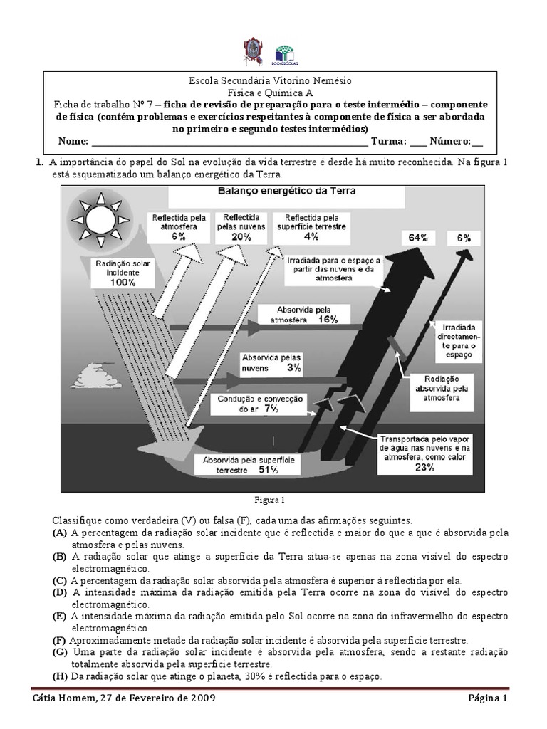 1. A importância do papel do Sol na evolução da vida terrestre é desde há muito reconhecida. Na figura 1 está esquematizado um balanço energético da Terra.