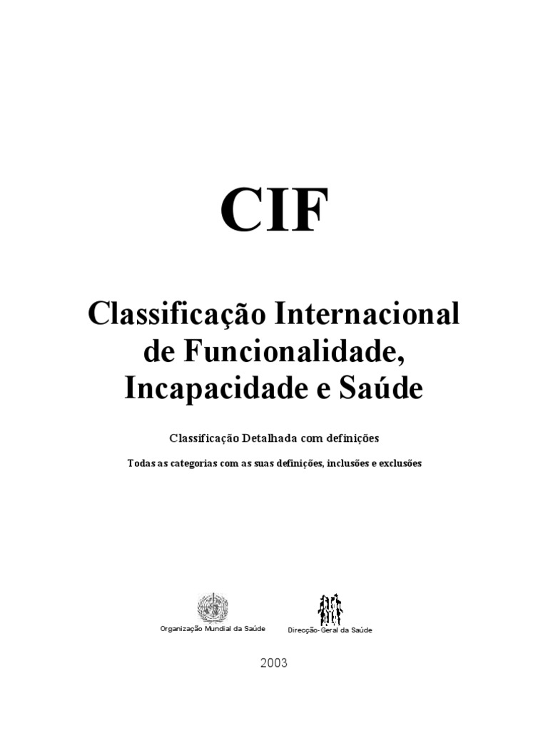Este volume contém a Classificação Internacional de Funcionalidade, Incapacidade e Saúde, conhecida como CIF 1 . O objectivo geral da classificação é proporcionar uma linguagem unificada e padronizada assim como uma estrutura de trabalho para a descrição da saúde e de estados relacionados com a saúde. A classificação define os componentes da saúde e alguns componentes do bem-estar relacionados com a saúde (tais como educação e trabalho). Os domínios contidos na CIF podem, portanto, ser considerados como domínios da saúde e domínios relacionados com a saúde. Estes domínios são descritos com base na perspectiva do corpo, do indivíduo e da sociedade em duas listas básicas: (1) Funções e Estruturas do Corpo, e (2) Actividades e Participação. 2 Como classificação, a CIF agrupa sistematicamente diferentes domínios 3 de uma pessoa com uma determinada condição de saúde (e.g. o que uma pessoa com uma doença ou perturbação faz ou pode fazer). A Funcionalidade é um termo que engloba todas as funções do corpo, actividades e participação; de maneira similar, incapacidade é um termo que inclui deficiências, limitação de actividades ou restrição na participação. A CIF também relaciona os factores ambientais que interagem com todos estes constructos. Neste sentido, a classificação permite ao utilizador registar perfis úteis da funcionalidade, incapacidade e saúde dos indivíduos em vários domínios.