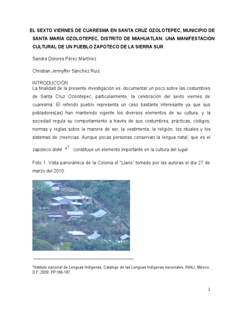 I.UN ACERCAMIENTO AL PUEBLO DE SANTA CRUZ OZOLOTEPEC