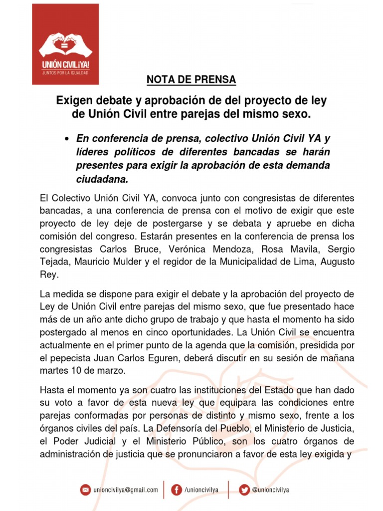 la aprobacin de la Unin Civil en el Per.
